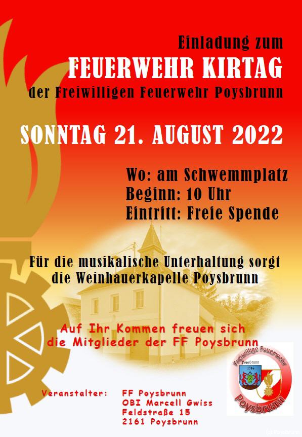 FREIWILLIGE FEUERWEHR POYSBRUNN SONNTAG, 21. AUGUST 2022 10:00 UHR AM SCHWEMMPLATZ