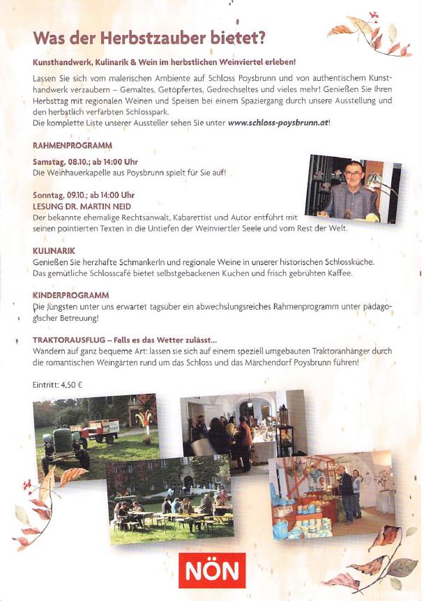Schloß Poysbrunn Samstag, 8. Oktober 2022 Sonntag, 9. Oktober 2022 Schloß Poysbrunn ... mehr Infos ...