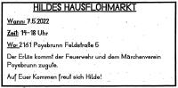 Samstag, 7. Mai 2022, 14:00 bis 18:00 Uhr Feldstraße 5, 2161 Poysbrunn Der Erlös kommt der Freiwilligen Feuerwehr Poysbrunn und dem Märchenverein Poysbrunn zu Gute! Auf Euer Kommen freut sich Hilde!