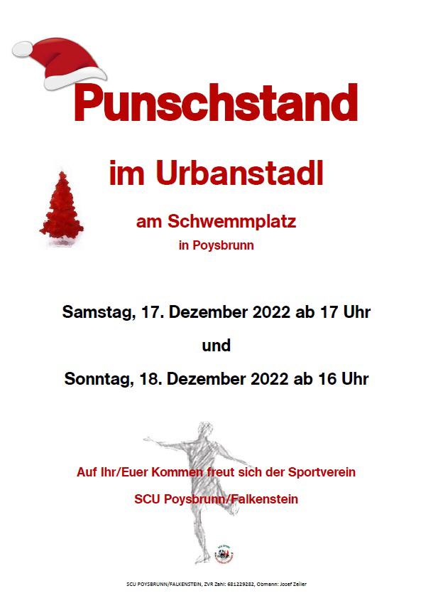 SCU Poysbrunn/Falkenstein Samstag 17. Dezember 2022 ab 17 Uhr Sonntag 18. Dezember 2022 ab 16 Uhr im Urbanstadl am Schwemmplatz