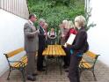 Die offizielle Eröffnung der revitalisierten Kellergasse Franzbergen fand gegen 14:15 Uhr mit Frau Bgm. Riegelhofer und Landesrat Mag. Wilfing statt. Der Obmannn des Dorf- und Verschönerungsvereines Poysbrunn Erhard Heinrich führte durch die Festreden und bedankte sich bei den Kellergassenbesitzern für ihr Engagement und ihren unermüdlichen Einsatz. Dipl.-Ing. Edwin Hannak, der seit langem Poysbrunner Verschönerungsprojekte unterstützt, überreichte an Oskar Sollan (und Anton Jilli) Fotos von der Verlegung des Poysbrunnerwappens. Landesrat Mag. Karl Wilfing erhielt die neu gestalteten Poysbrunner Füchse als Dank für seine Unterstützung bei der Verwirklichung des Projektes Franzbergen.