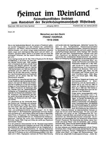 War er der bedeutendste Mensch der jemals in Poysbrunn geboren wurde? Lesen Sie hier über den Lebensweg von Direktor, Oberstudienrat, Professor, Mag. Franz Hadriga aus Poysbrunn.