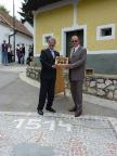 Die offizielle Eröffnung der revitalisierten Kellergasse Franzbergen fand gegen 14:15 Uhr mit Frau Bgm. Riegelhofer und Landesrat Mag. Wilfing statt. Der Obmannn des Dorf- und Verschönerungsvereines Poysbrunn Erhard Heinrich führte durch die Festreden und bedankte sich bei den Kellergassenbesitzern für ihr Engagement und ihren unermüdlichen Einsatz. Dipl.-Ing. Edwin Hannak, der seit langem Poysbrunner Verschönerungsprojekte unterstützt, überreichte an Oskar Sollan (und Anton Jilli) Fotos von der Verlegung des Poysbrunnerwappens. Landesrat Mag. Karl Wilfing erhielt die neu gestalteten Poysbrunner Füchse als Dank für seine Unterstützung bei der Verwirklichung des Projektes Franzbergen.